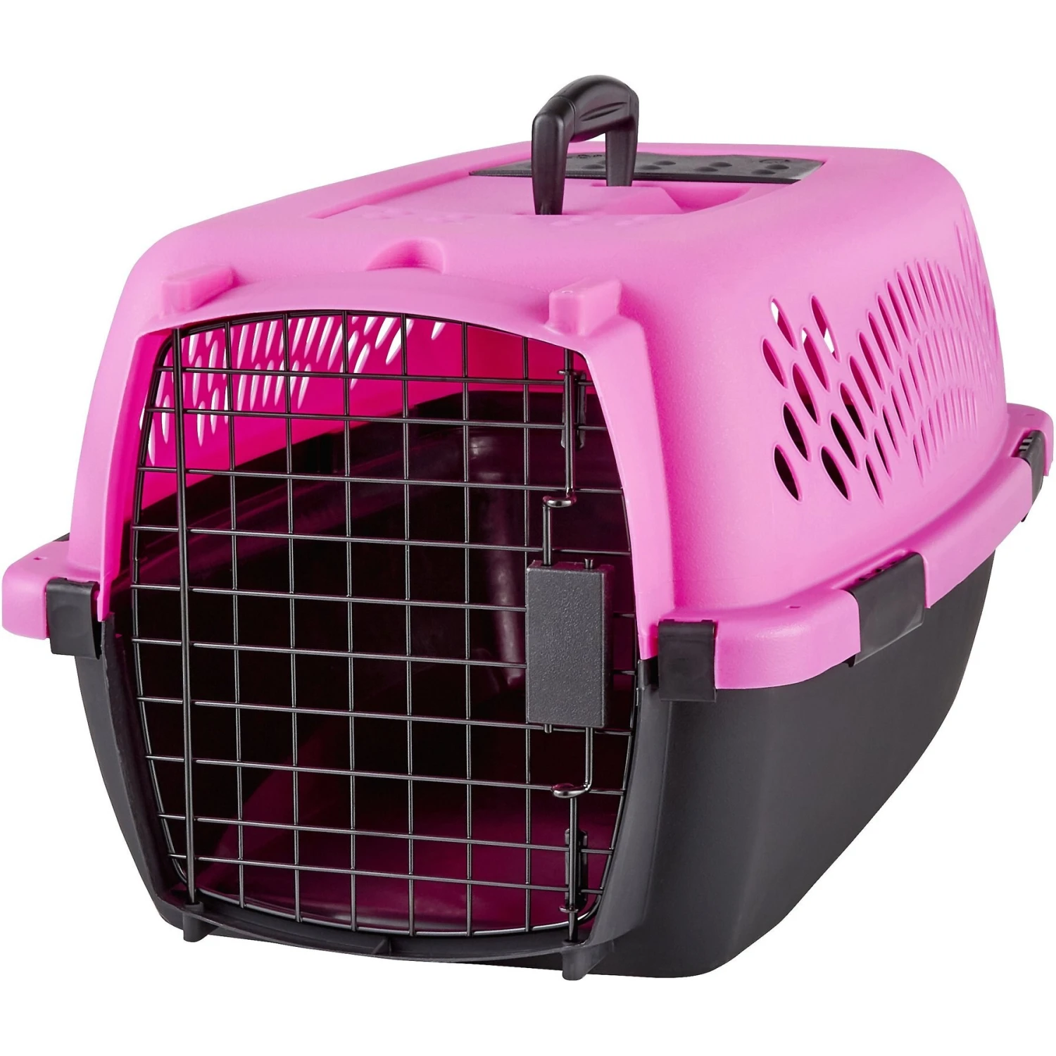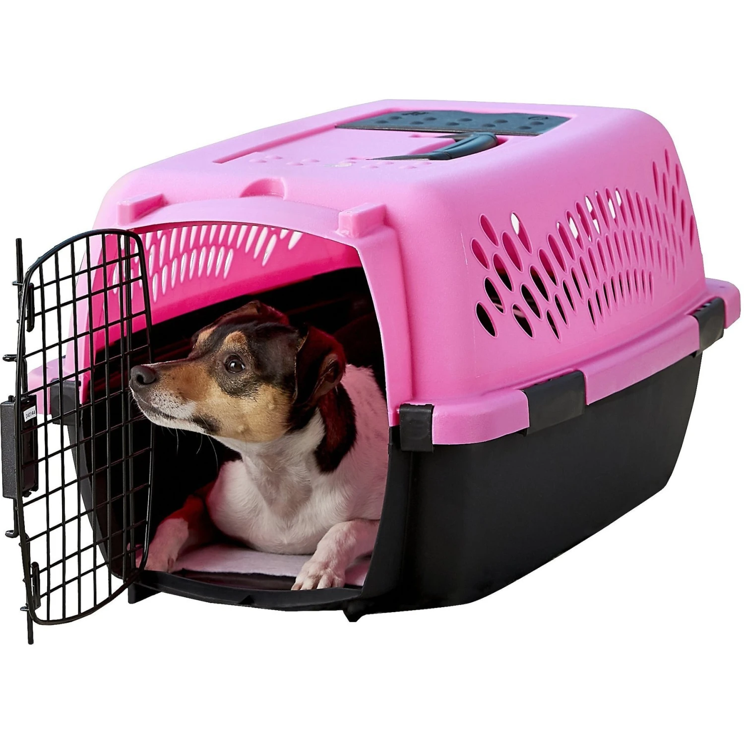 Keep your furry friend comfortable during your travels with Aspen Pet Dog & Cat Kennel! Equipped with a three-in-one storage compartment, this carrier is paw-fect for holding your fur baby and his gear. It has side vents that help keep him cool during your adventures, and it has an easy latching mechanism on the steel door. You can use it in the car, on airplanes, and more so your little buddy can come with you on every adventure. Available in a variety of fun and adorable colors, you are bound to find a comfy carrier that will suit your furry friendโs aesthetic.