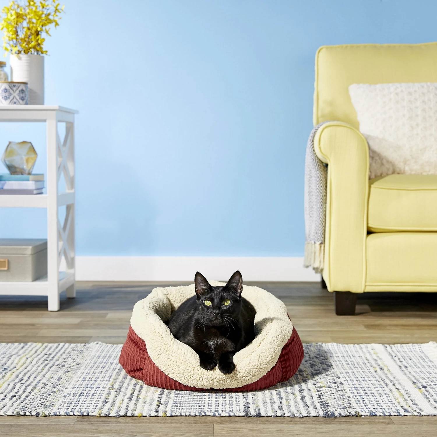 The Aspen Pet Self-Warming Bolster Cat & Dog Bed is a paw-some way to keep your furbaby comfy and cozy. This self-warming bed uses the same technology used in items like space blankets to keep your best friend warm. A special interior layer reflects your petโs own body heat back at him, and a faux lambswool plus is warm and cozy. Thereโs no electricity required, and a non-slip bottom helps to keep the bed from sliding across the floor.
