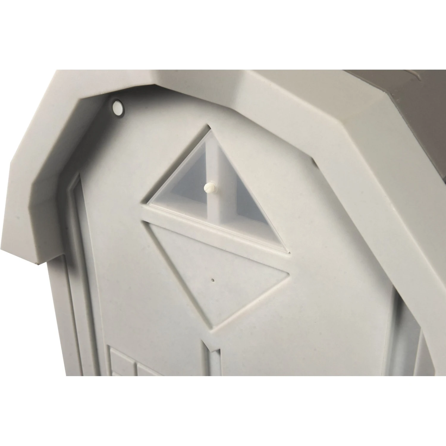 Help your dog weather the outdoor elements in style with the Dog Palace Insulated Dog House. This outdoor shelter was designed with all the comforts of home in mind. Each panel is made with two to four inches of insulation to help your pup keep warm or cool when it counts. Raised flooring and a swinging door offer a cozy spot to seek shelter from the rain. For a fresh breeze on a beautiful day, two easy-open windows provide added air flow. Plus, the durable, weather-proof construction is easy to keep clean with a garden hose. This barn-shaped abode is pawfect for medium and large dogs with a shoulder height of 26.5 inches or less. Give your furbaby a comfy space for quick getawaysโjust a few short steps away from home sweet home!