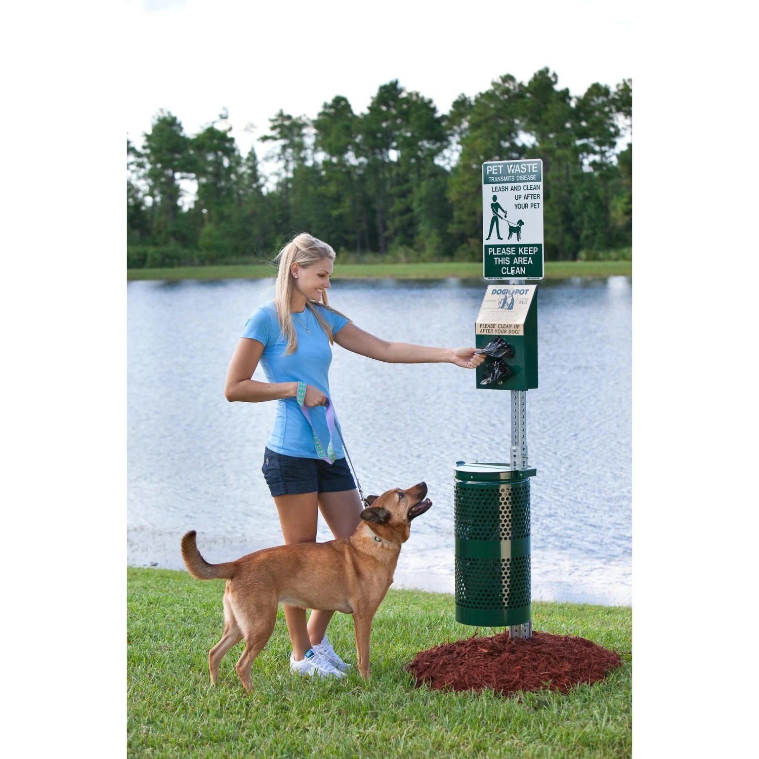 Take the lead and help pet owners go green with the Dogipot Aluminum Dog Waste Station & Receptacle. These durable aluminum waste stations are perfect for use in pet-friendly community spaces such as parks, apartment complexes, outdoor areas around veterinary offices and more. Each station includes a bag dispenser that stores two rolls of 200-count Dogipot Smart Litter Dog Poop Pick Up Bags and a lidded waste receptacle. The bold, clear signage alerts pet owners about the dangers of animal waste pollution and encourages them to keep your pet-friendly space clean. By providing an accessible and simple clean-up option, you can help prevent the spread of disease and promote a clean and happy community!