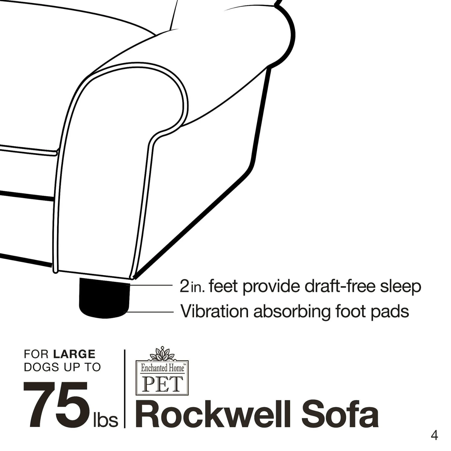 Help bigger buddies relax in classic style with the wonderfully sturdy Rockwell Pet Sofa. This faux leather rolled arm beauty features a refined look and a plush micro-velvet cushion that will cradle your best friend in comfort. Itโs made with furniture-grade construction and designed to hold up to 75 pounds, with elevated legs and a washable cushion cover for easy maintenance. Great for larger dogs who like to lean or curl up or a whole pack of smaller pets!