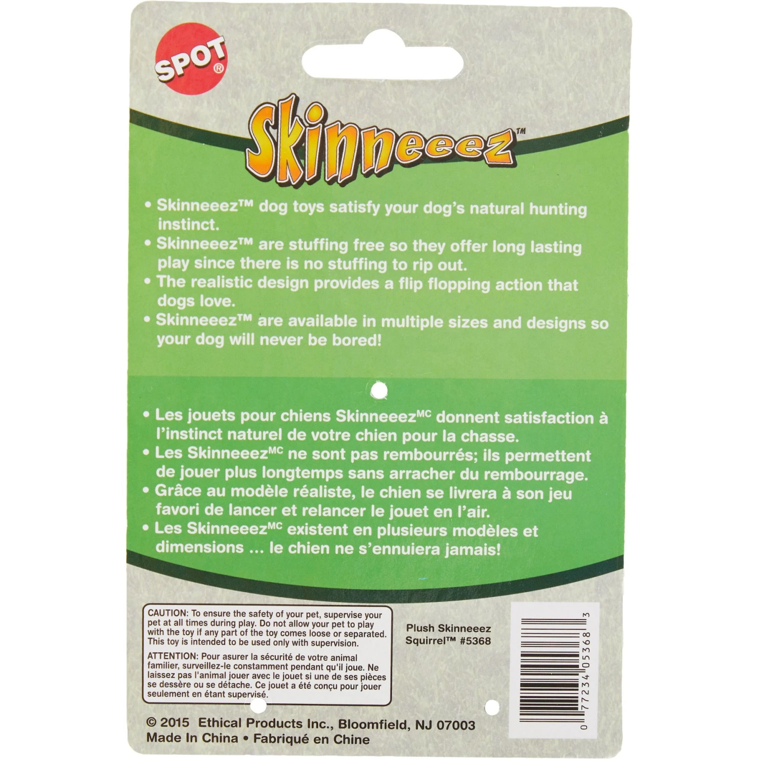The Ethical Pet Skinneeez Forest Series Squirrel Stuffing-Free Squeaky Plush Dog Toy is a paw-some way to treat your furbaby to tons of play with less mess. This stuffing-free toy helps to satisfy your pupโs natural hunting instinct. The realistic animal design creates a flip flopping action that dogs love. The squeaker inside adds extra fun, and the toy is machine washable for su-paw easy cleaning.