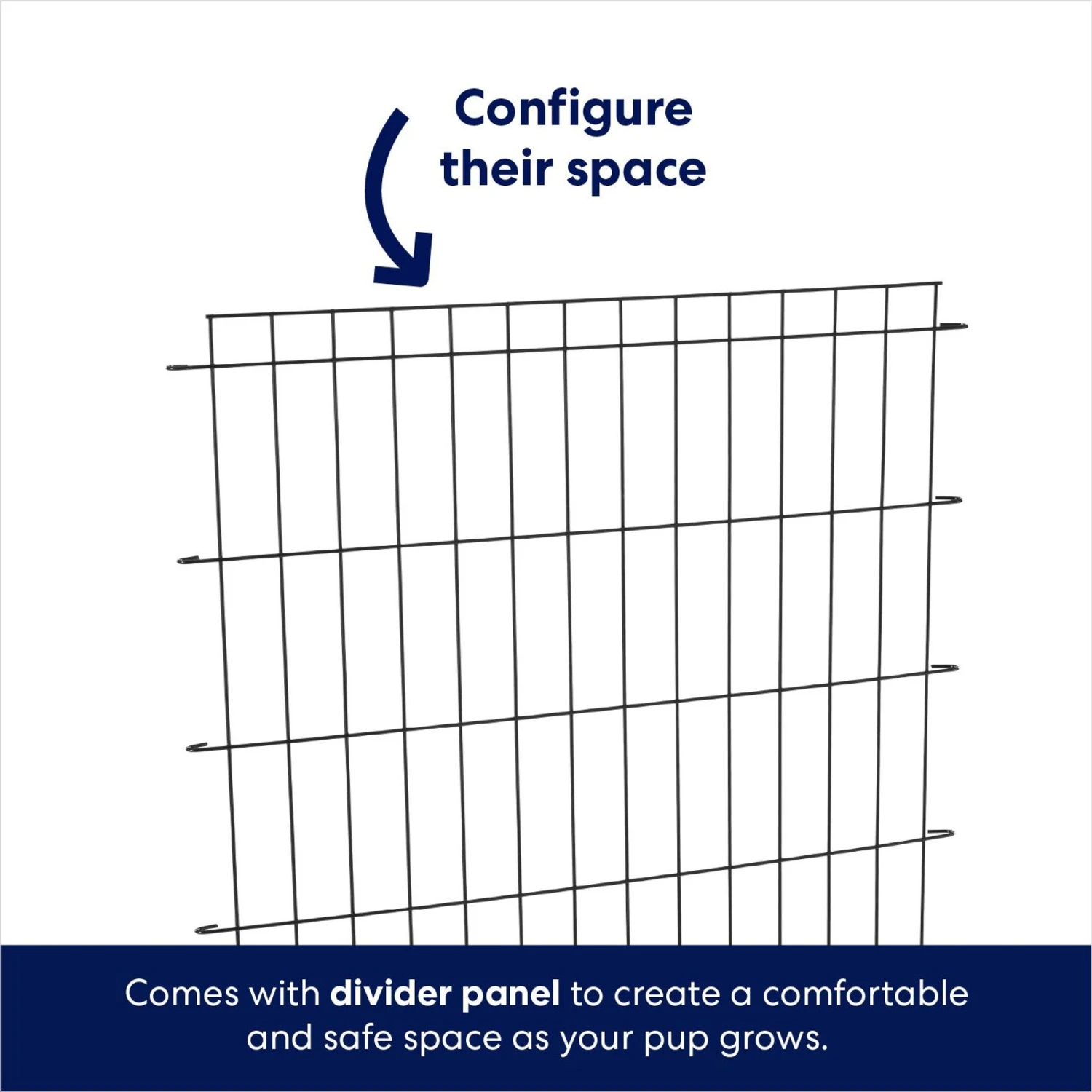 - Removable divider panel allows you to create a smaller space, so the crateโs size can be adjusted to accommodate your puppy as they grow, making it an essential accessory theyโll use throughout their life.