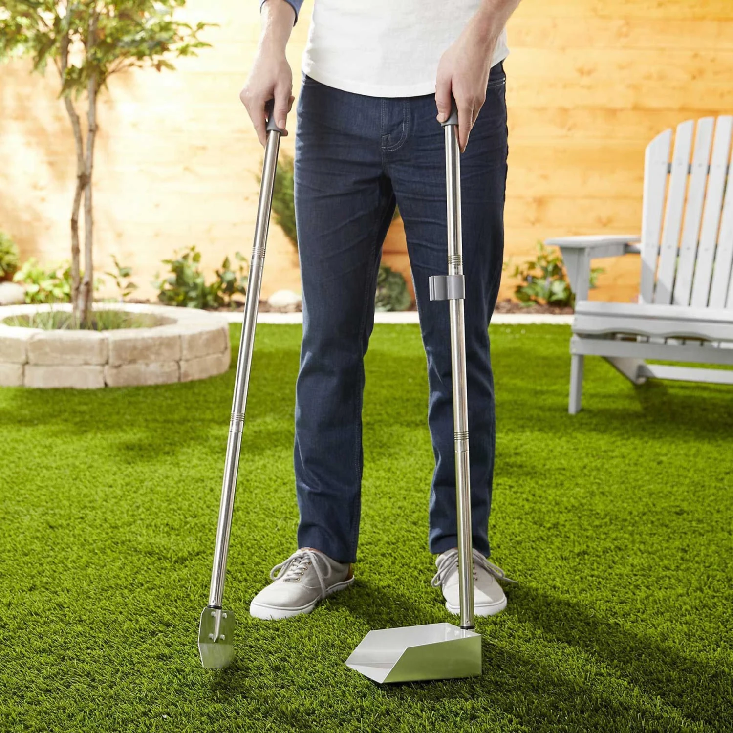 - Long handles let you pick up waste without needing to bend down as far, saving your back.