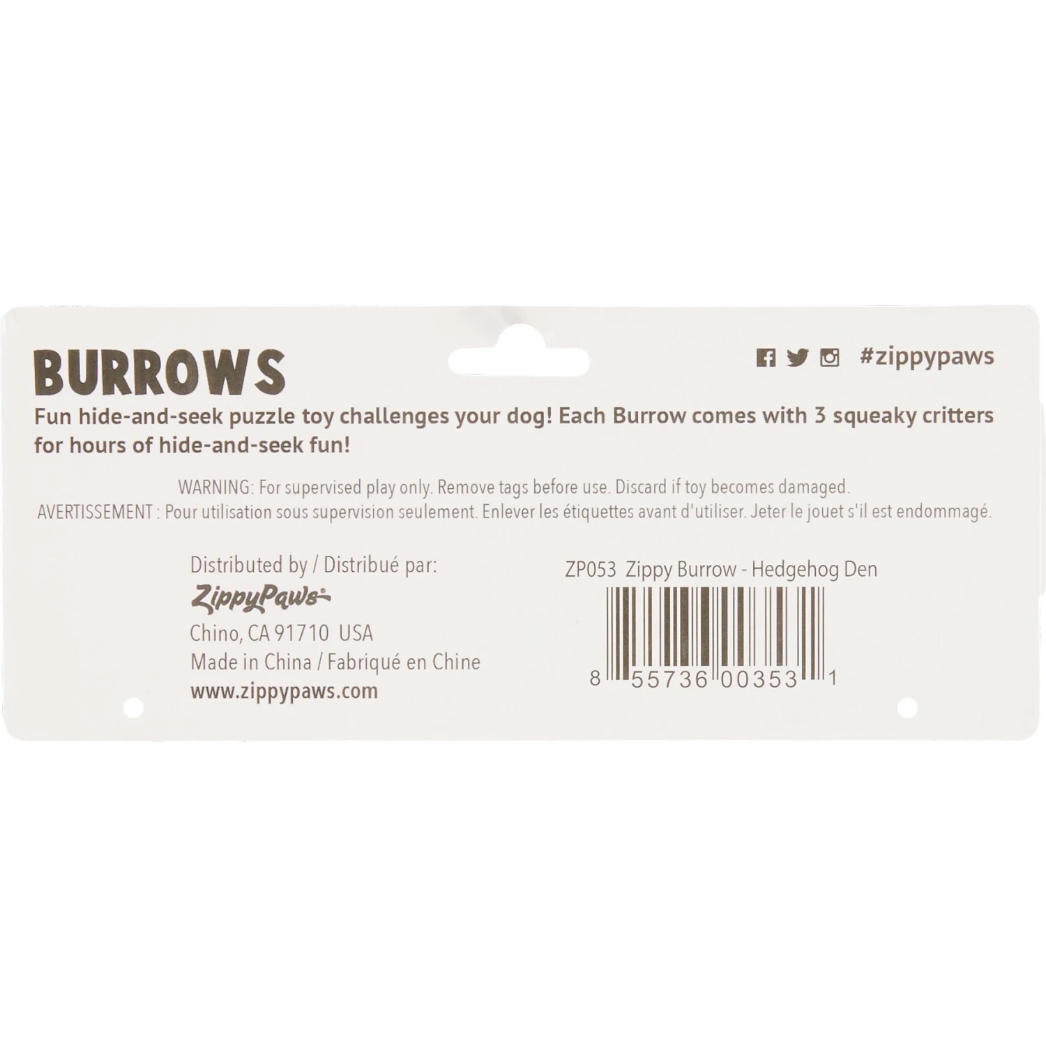 ZippyPaws Burrow Squeaky Hide & Seek Plush Dog Toy, Hedgehog Den, Puzzle SetโDogs love burying their noses into the ZippyPaws Burrow Squeaky Hide & Seek Plush Dog Toy, for hours of entertainment. Simply hide one, two or all three of the included squeaky hedgehogs in the den, and this interactive plush toy will challenge your dog as he works to dig them out. And for even more fun, you can purchase the squeaky hedgehogs on their own. Great for small and medium-sized dogs, not suited for aggressive chewers. And itโs machine washable, making cleaning a breeze.
