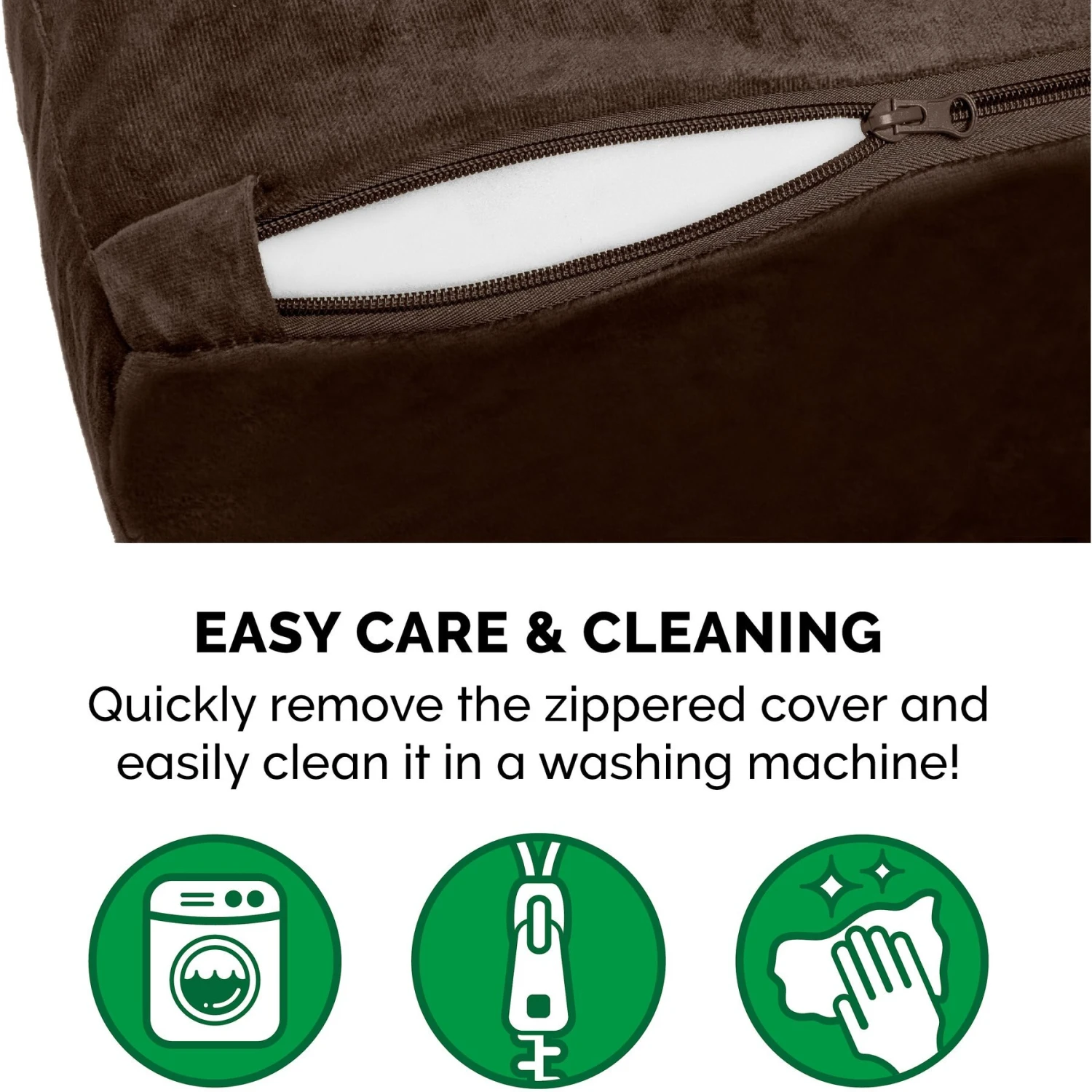 Cover: For best results – Remove filling (core). Zip close. Shake off any loose debris from cover before washing. Hand or machine wash separately; cold water. Do not bleach. Line dry or tumble dry low. Please see hangtag for core (stuffing) content and care instructions.
