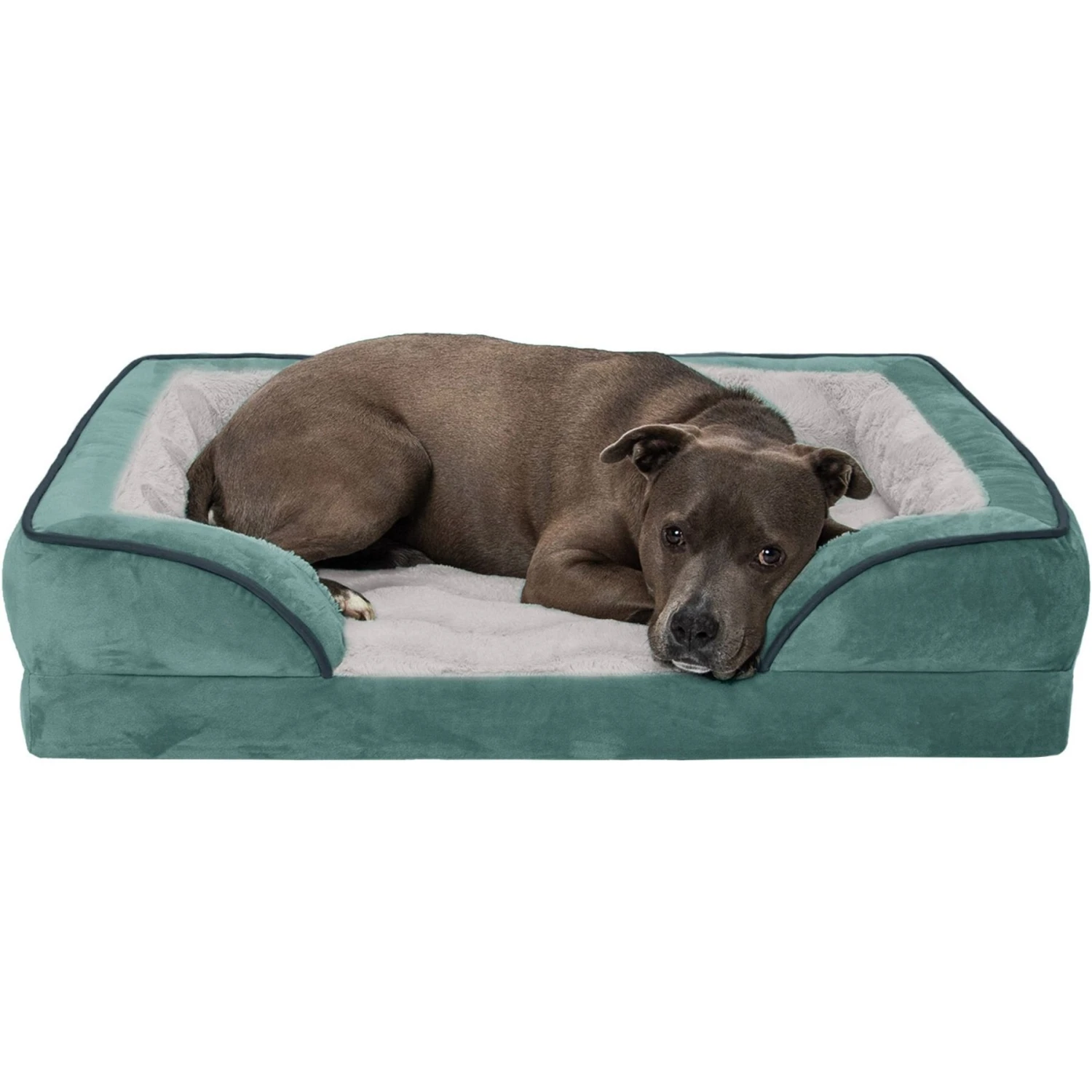 If your furry friend loves to cuddle and feel cozy, then she will love snuggling up in this FurHaven Velvet Waves Perfect Comfort Orthopedic Sofa Cat & Dog Bed. Designed with oversized, velvet-soft bolsters, this bed provides your paw-tner with a comfortable place to rest and relax. The bolsters are lined with plush faux fur and have an insulating filling. However, the comfort really comes into play with the orthopedic foam base that supports your petโs joints and pressure points to help improve her overall circulation. And for your convenience, the zippered cover is completely removable and washable.