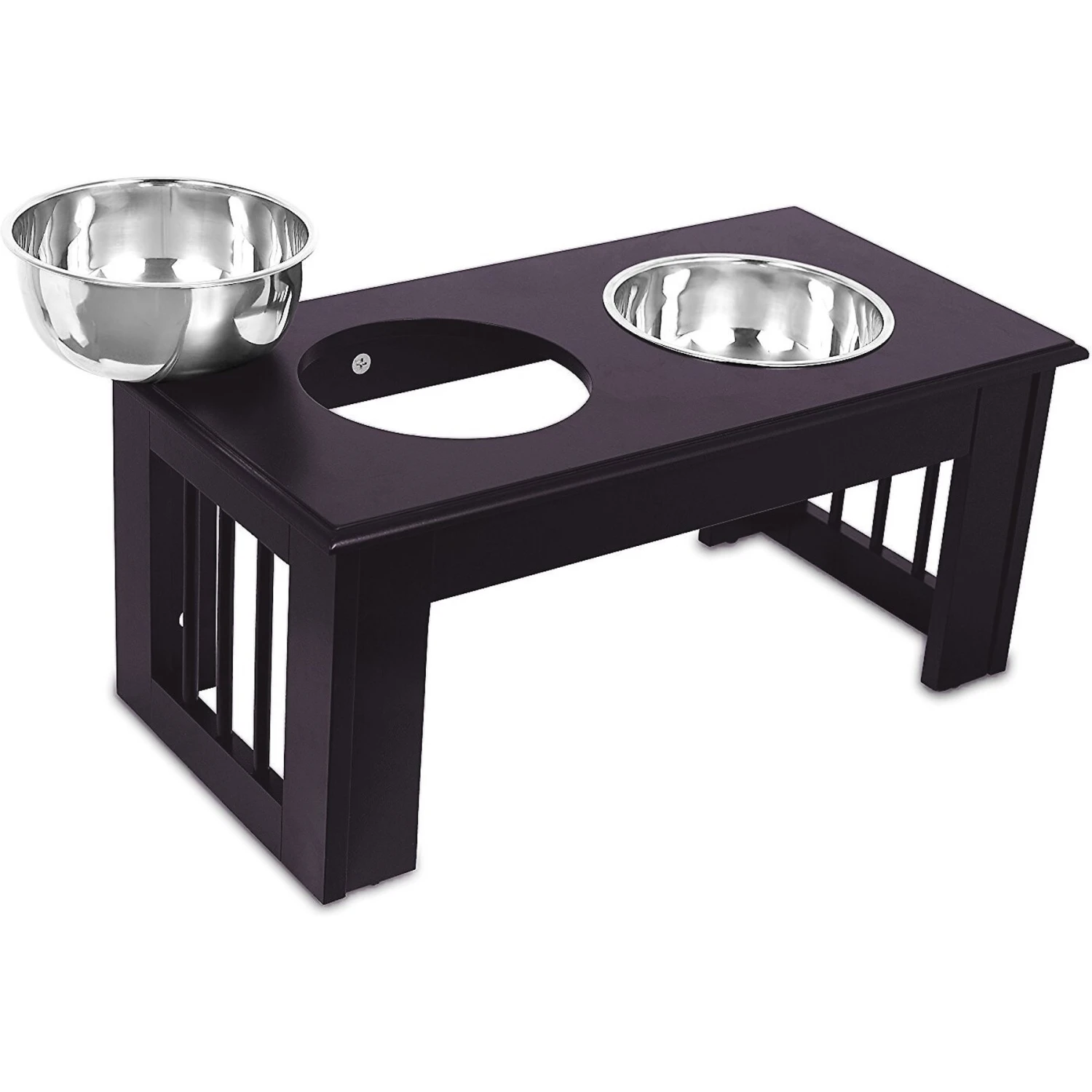 Make mealtime more comfortable for your pup with this Traditional Elevated Dog Feeder by Internet’s Best. Eating and drinking at the proper height is not only comfortable for your companion, but it can also be beneficial for his health and digestion. This elevated pet feeder is crafted from durable wood and stained with an espresso finish. It comes with two, removable stainless-steel dog bowls that hold two quarts each. And for your convenience, the bowls are also 100% dishwasher safe for easy cleaning after each meal.