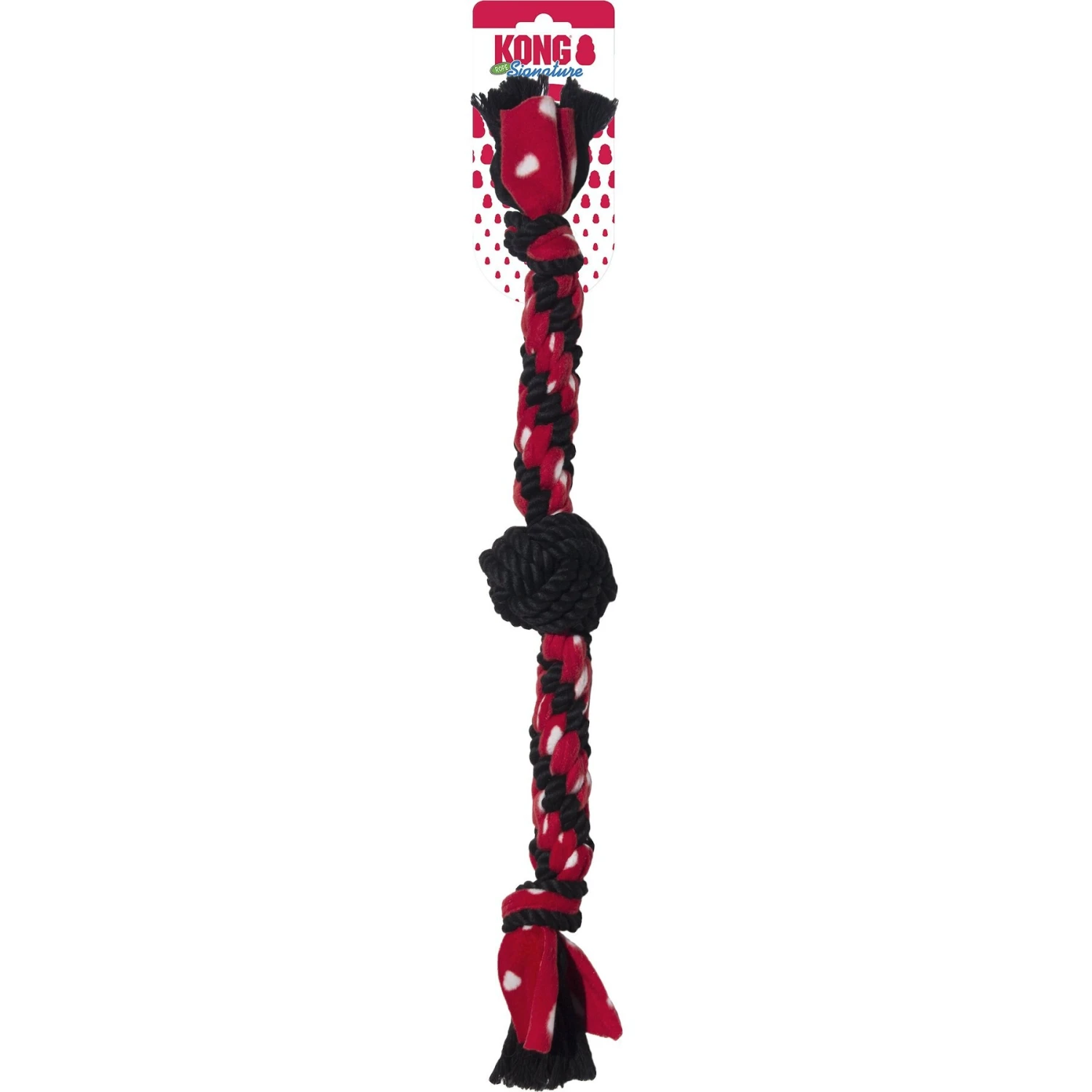 Double your fun! The KONG Signature Dual Knot & Ball Tug Rope Dog Toy features a unique, braided design that is engaging and entertaining. With soft cotton and fleece material that stretches and a center braided knot for extra chewing fun, this toy is perfect for gentle games of tug-of-war or fetch. Plus, the durable material can even help clean your dogโs teeth. For an interactive option to add to your canine companionโs toy box, this rope is a paw-fect choice.