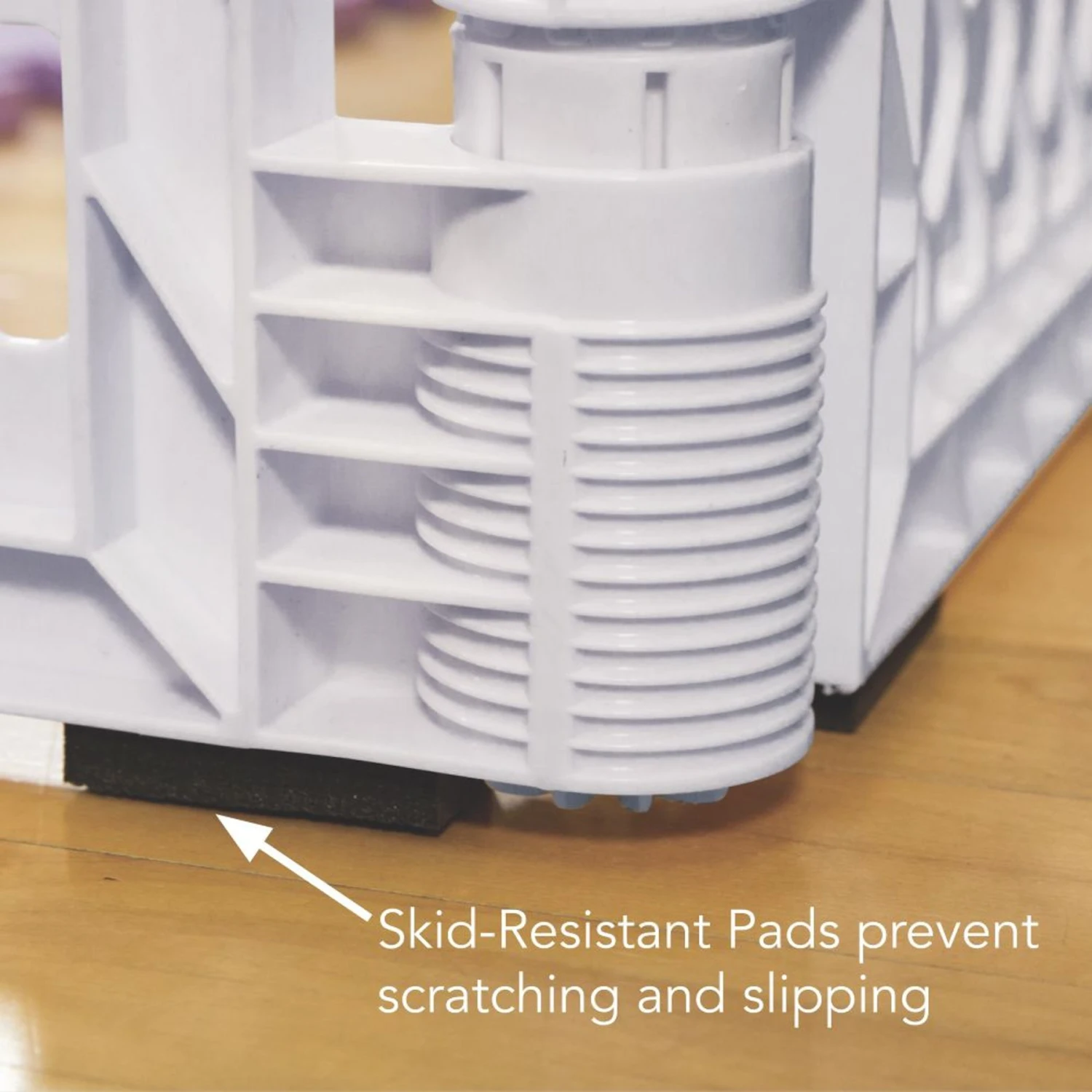 - Durable, light grey plastic panels are easy to clean, and fold up fast for easy travel with carrying straps.