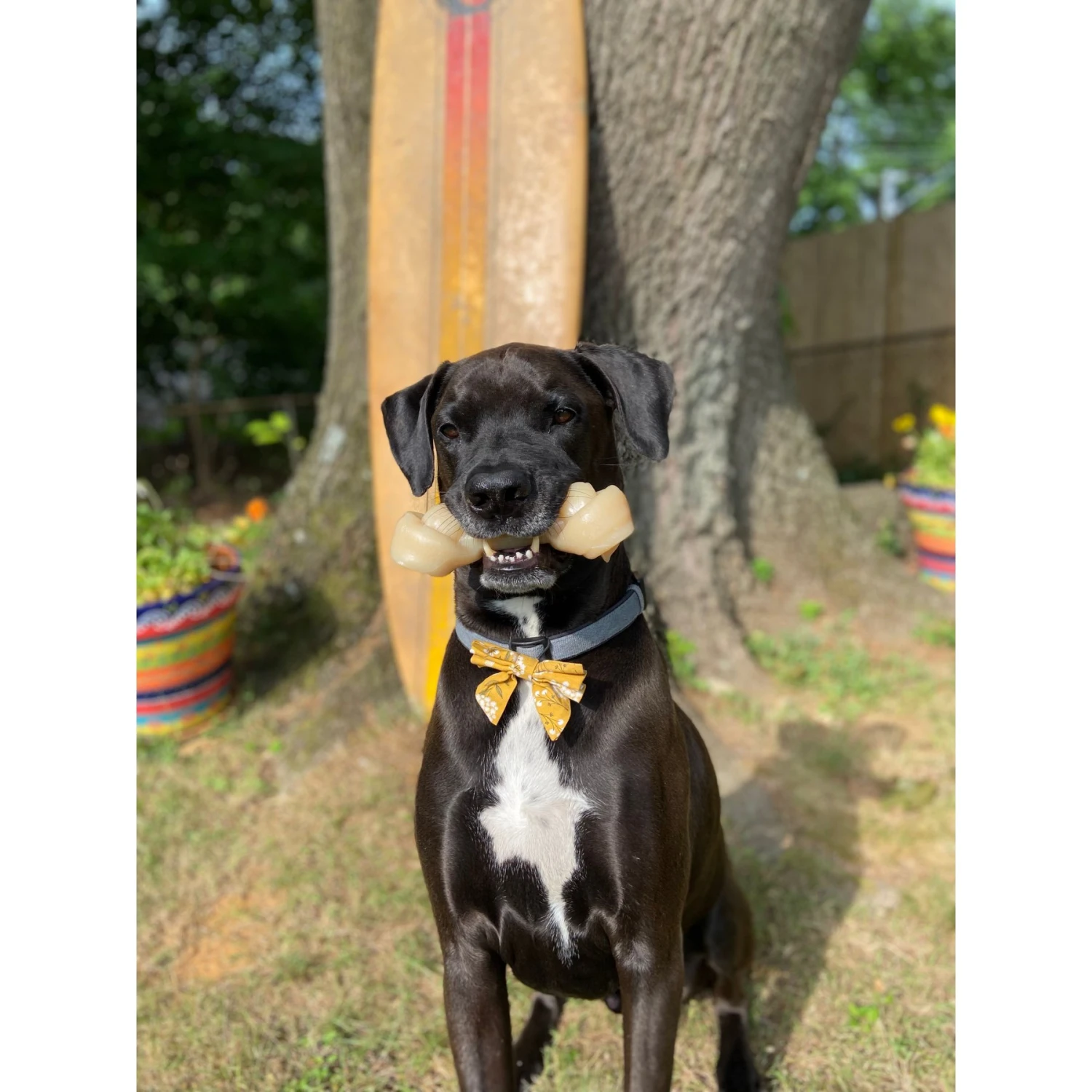 - Created in a familiar bone shape that helps keep your furry friend occupied, encouraging healthy chewing habits.