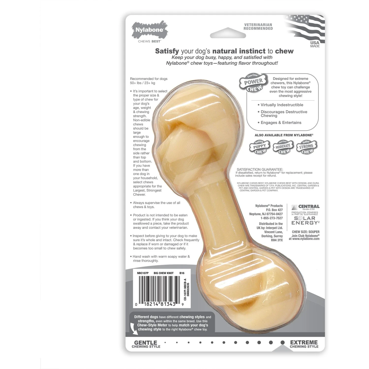 The Nylabone Power Chew Knot Bone BIG Dog Chew Toy is designed to stand up to aggressive chewers and provides long-lasting entertainment for your pooch. Made from extra-tough nylon, this bone features a delicious flavor and a subtle yet satisfying texture. Plus, it helps clean teeth and control plaque and tartar buildup as your dog chews. This durable dog toy discourages destructive chewing habits and helps prevent boredom. Whether you’re training, occupying, or working to manage separation anxiety, there are plenty of reasons for you and your furry friend to love the Power Chew Knot Bone. Go ahead and give your power chewer a Nylabone chew toy!
