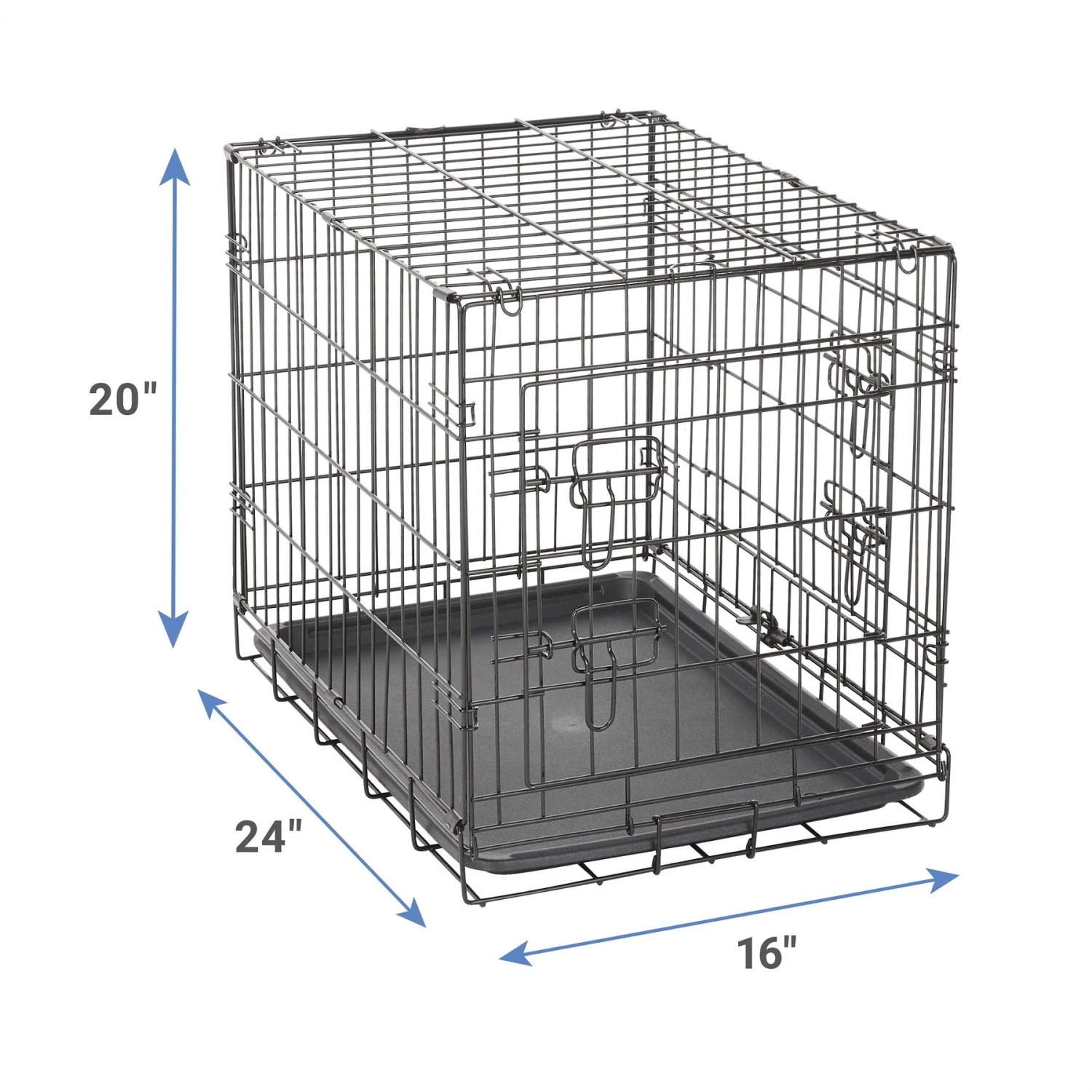 Keep your dog safe while you’re away and house train him quickly and effectively with a Paws & Pals Oxgord Double-Door Folding Heavy-Duty Wire Dog Crate. In nature, canines feel safe and secure in their den, and a crate of his own to call home can give your pooch the same level of comfort, regardless of his age. It’s made of high tensile-strength, steel wire that’s securely formed and welded for strength and durability and then electro-coated for rust, corrosion and fade resistance, even in extreme climates. The collapsible design makes it simple to set up in seconds and a cinch to fold and store, whenever needed. It’s also ideal for taking along on a road trip to keep him safe and comfortable in a hotel, friend’s home or other unfamiliar location.