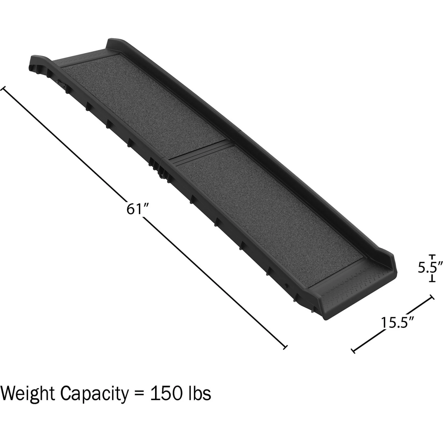 With the Pet Adobe Folding Car Dog Ramp, you can boost your furbabyโs confidence getting into or out of the car. The textured ramp and secure structure make it easy to use. Because itโs made of plastic, itโs su-paw easy to clean off. Itโs an ideal choice for pets who are elderly, disabled, injured or just nervous about jumping into or out of a vehicle, though it can also be used to help your pet up onto or off of your furniture. This ramp features a 150-pound weight capacity, so itโs ideal for dogs, cats, baby goats and chickens.