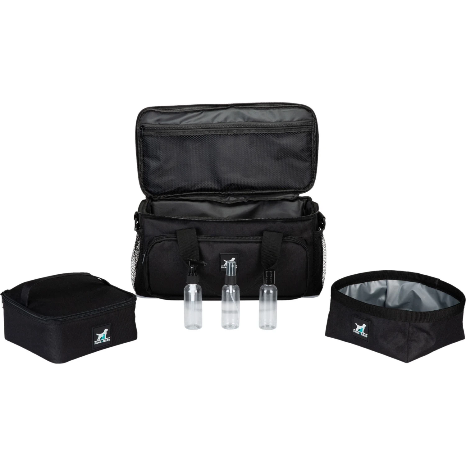 Small pet weekender bag, Zip-up container, Food/water container, 3pc travel bottle set