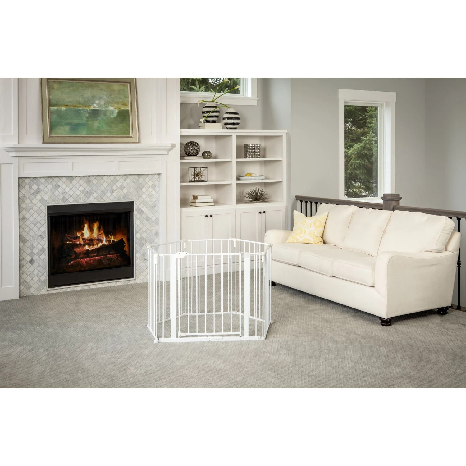- Suitable as a play yard, fireplace barrier or gate for wide openings.