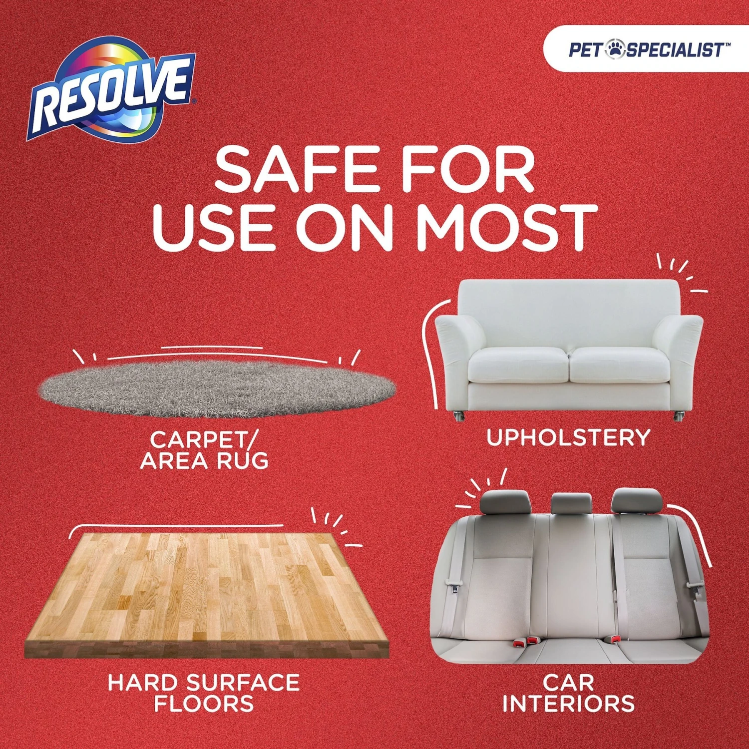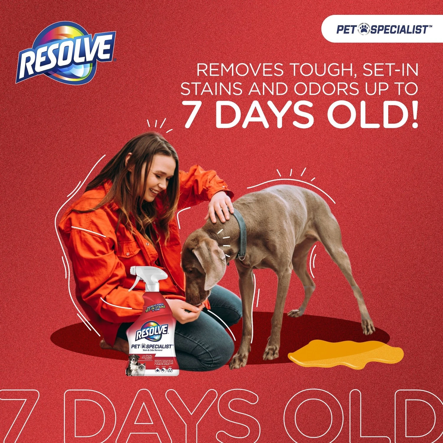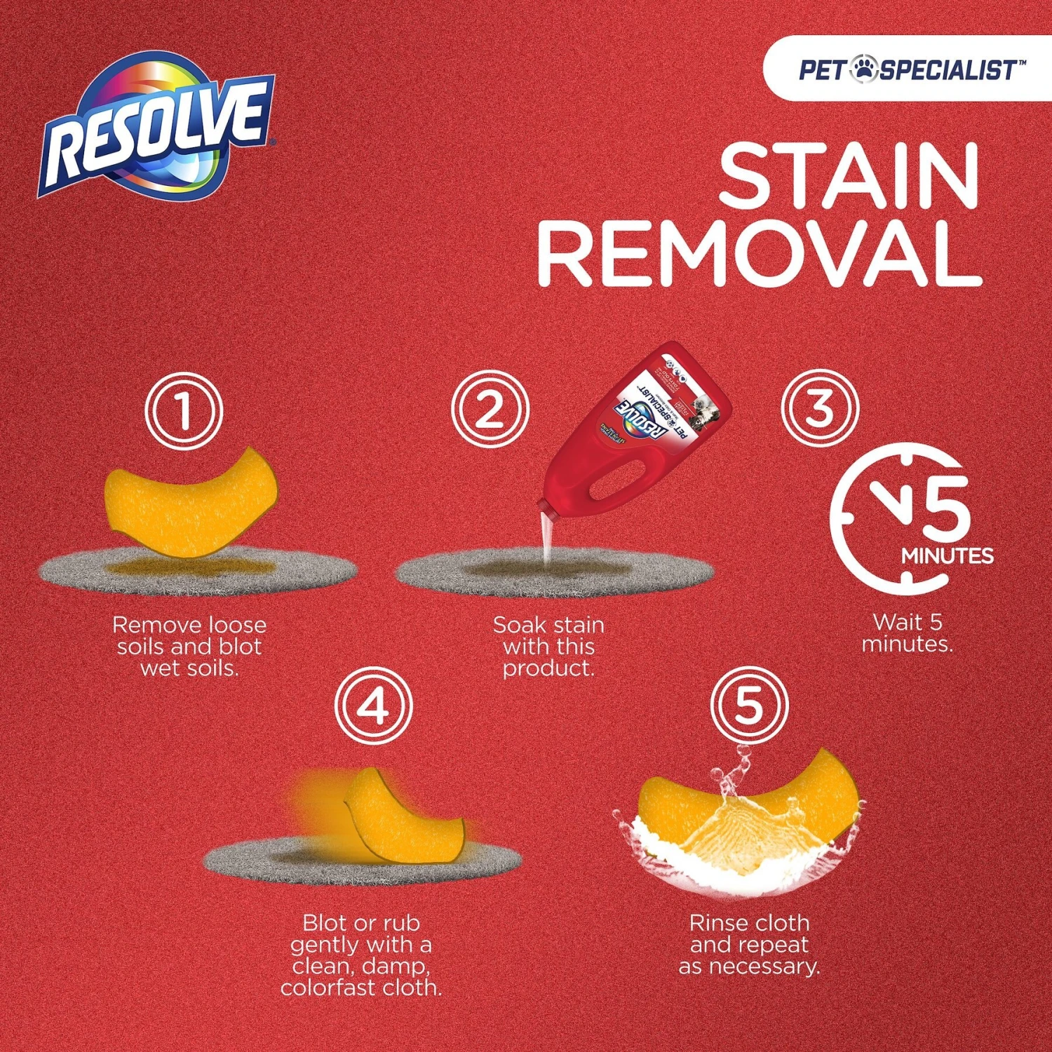 Stains and odors donโt have to be an unavoidable part of pet parent life, especially when you deploy Resolve Pet Specialist Stain & Odor Remover! Made in the USA, this tough stain remover effectively eliminates odors and stains resulting from human and pet messes like dirt, feces, and vomit. Plus, it is safe for use around pets and pet parents when used as directed, so you can rest easy knowing you are using a product that is safe for all members of your family. The convenient pouring action is paw-fect for keeping your home looking and smelling fresh and clean!