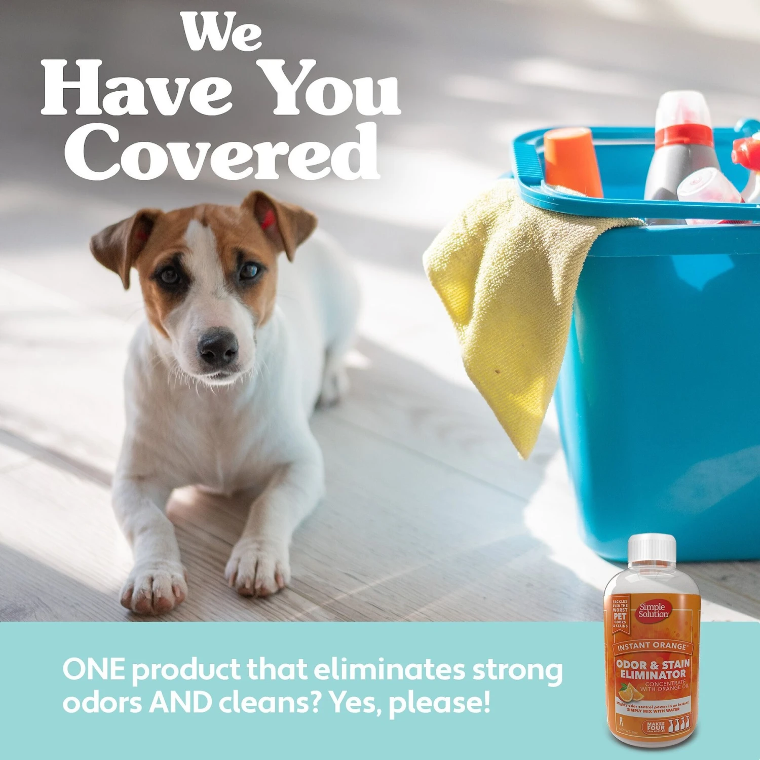 Get the perfect punch of cleaning power with Simple Solution Instant Orange Odor & Stain Eliminator Concentrate. This citrus-scented cleaner works to remove tough pet stains and odors from almost any surface in your home. The concentrated formula mixes with water to help you clean more, and lasts longer than other stain and odor removers. Best of all, it’s safe for use around your children and pets when used as directed. It’s the paw-fect formula for a cleaner, happier home!