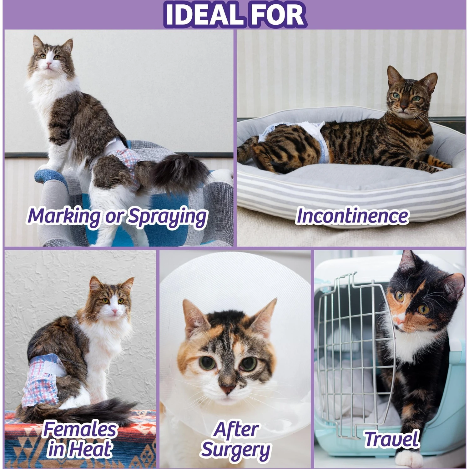 - Disposable cat diapers feature easy-to-grip, adjustable tabs.