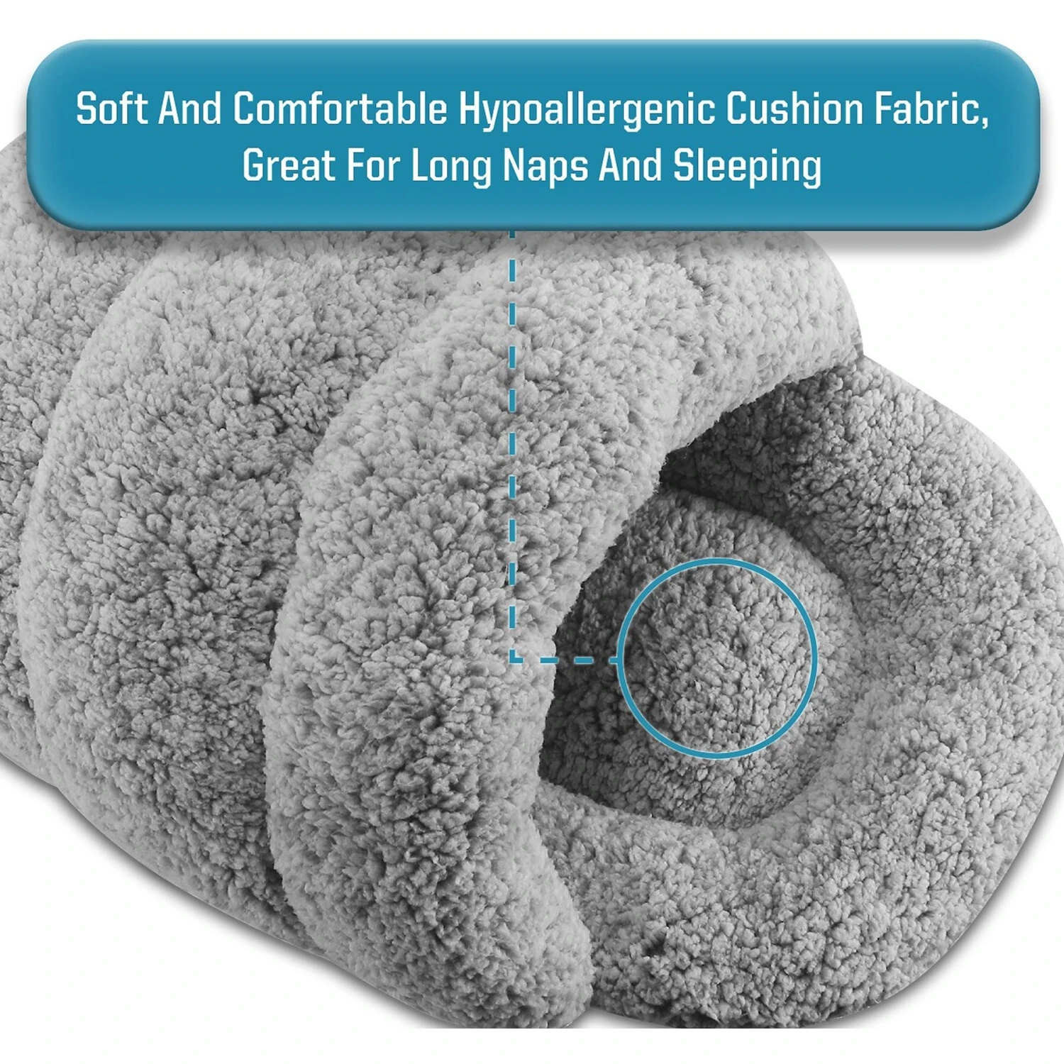 The Sleepy Pet Slipper Covered Cat & Dog Bed is one slipper your furbaby wonโt want to chew up! This pet bed features a fuzzy hood that offers a secure nesting space when your furbaby wants a little privacy. The warm, soft filling makes this bed a comfy choice for nearly all sleeping positions. Each cozy cushion is made with durable materials that stand up to your pet burrowing and digging to find the paw-fect position. Plus, a quilted design helps keep the filling in place so the bed stays plump, soft and cozy. To clean, simply toss the bed in your washing machine.