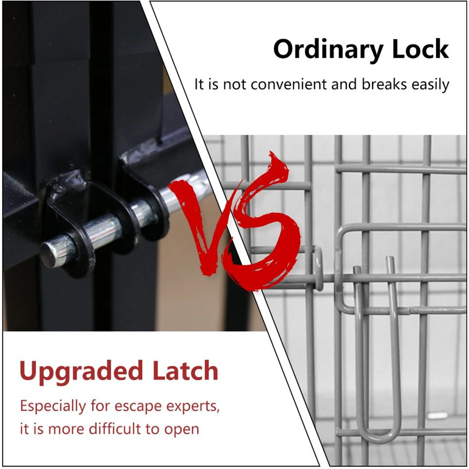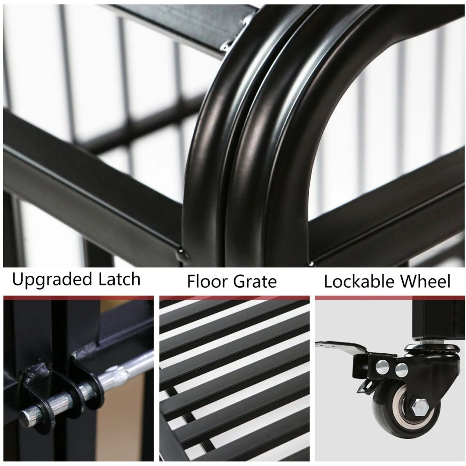 Every dog deserves a safe, cozy place to call his own, so give your fur baby his own little space with a SMONTER Heavy Duty Metal Indoor & Outdoor Medium & Large Breed Dog Crate. Welded with durable steel bars that are rust-proof and corrosion-proof, this crate has optimal ventilation for your fur baby so he can rest comfortably. The spacious double doors and 360-degree views makes entry, feeding, and petting simple. Plus, the removable, washable plastic tray on the bottom collects fallen food and any potential โaccidents,โ meaning you can easily keep your pupโs humble abode clean. Its portable tooโfour lockable metal wheels makes transporting this crate simple. Itโs the paw-fect home for medium to large dogs.