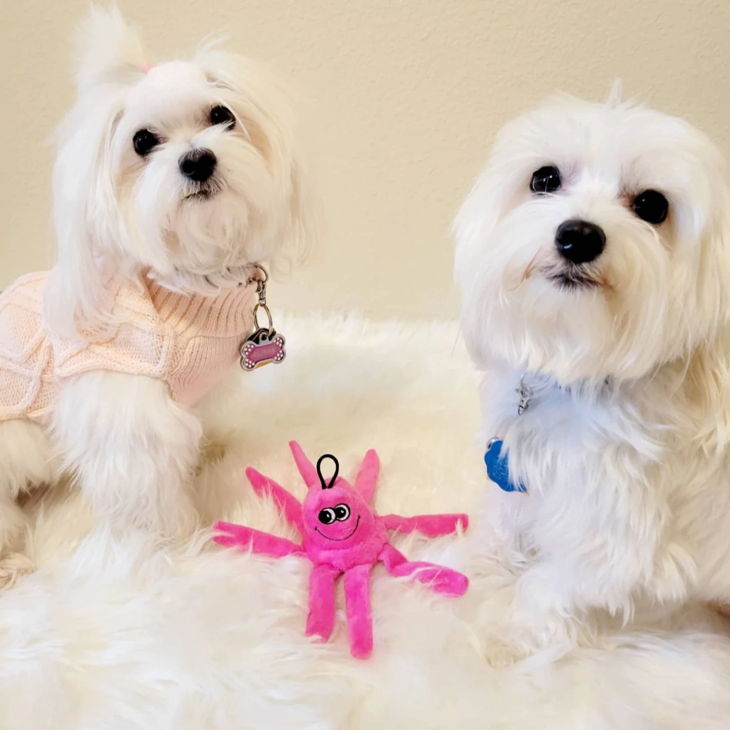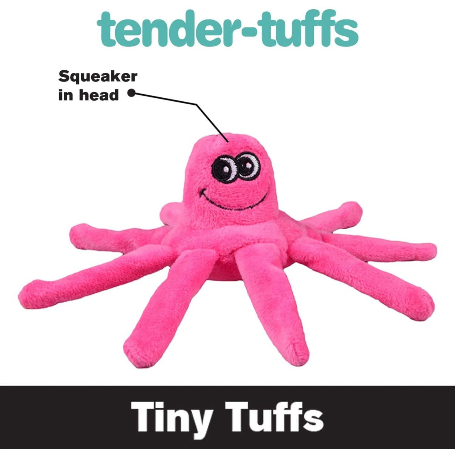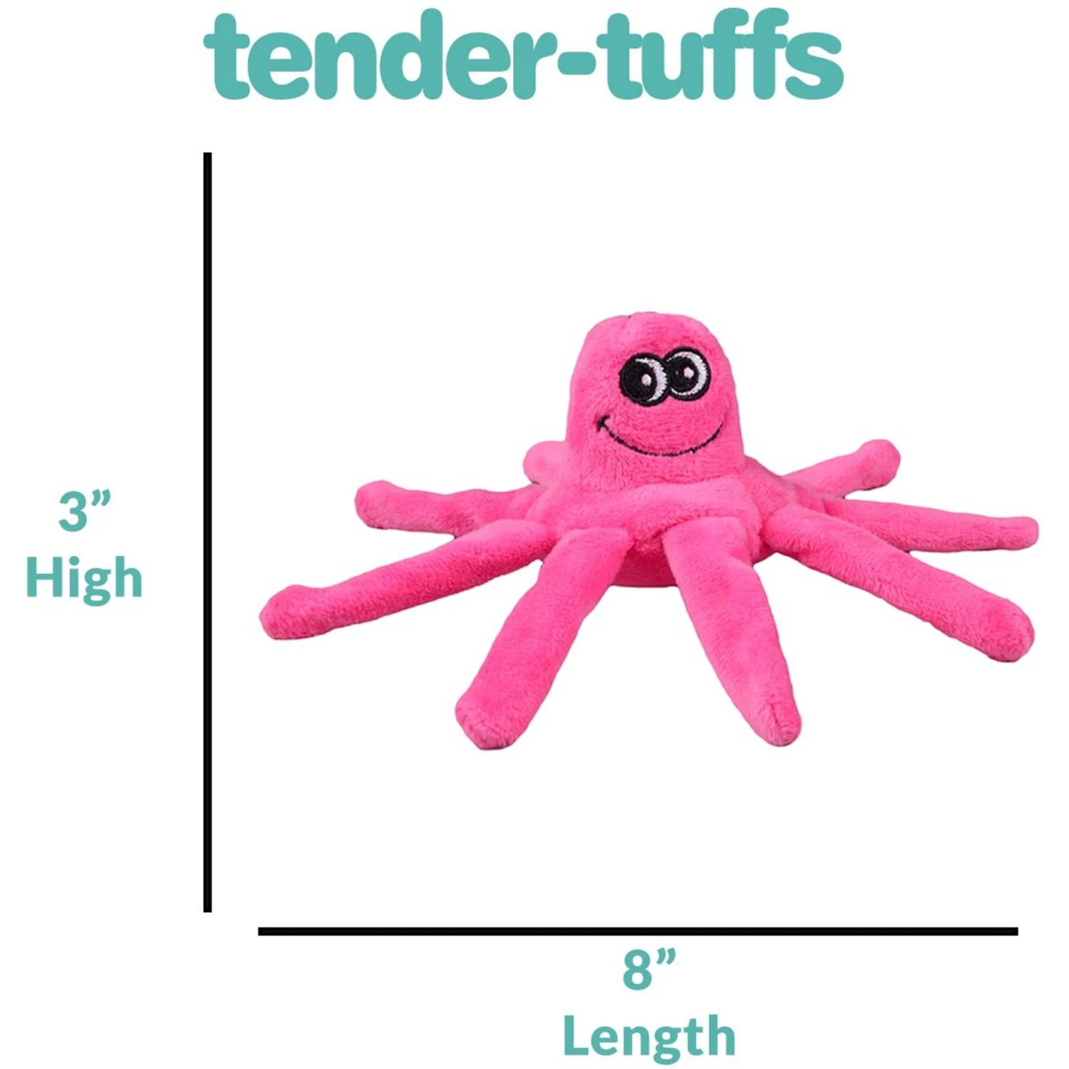 Keep your pooch running and fetching with the Snuggle Puppy Tender-Tuffs Tiny Pink Octopus For Small Dogs! Featuring an adorable miniature size and a puncture-resistant squeaker, this su-paw cute plush keeps your smaller furry friend entertained for maximum playtime enjoyment. Crafted with TearBlok technology, this toy stays tuff to withstand extended play. It also helps you and your fur-iend increase bonding time for extra fun and excitement that lasts for hours.
