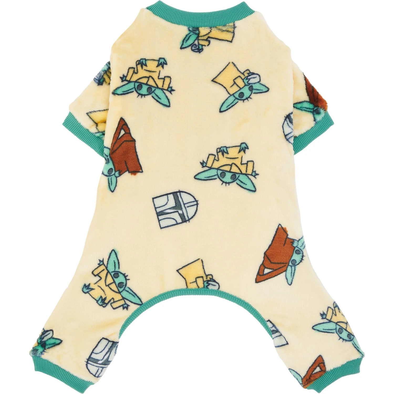 - Mandalorian-themed pattern featuring Grogu and Mando adds an adorable touch to your petโs loungewear.