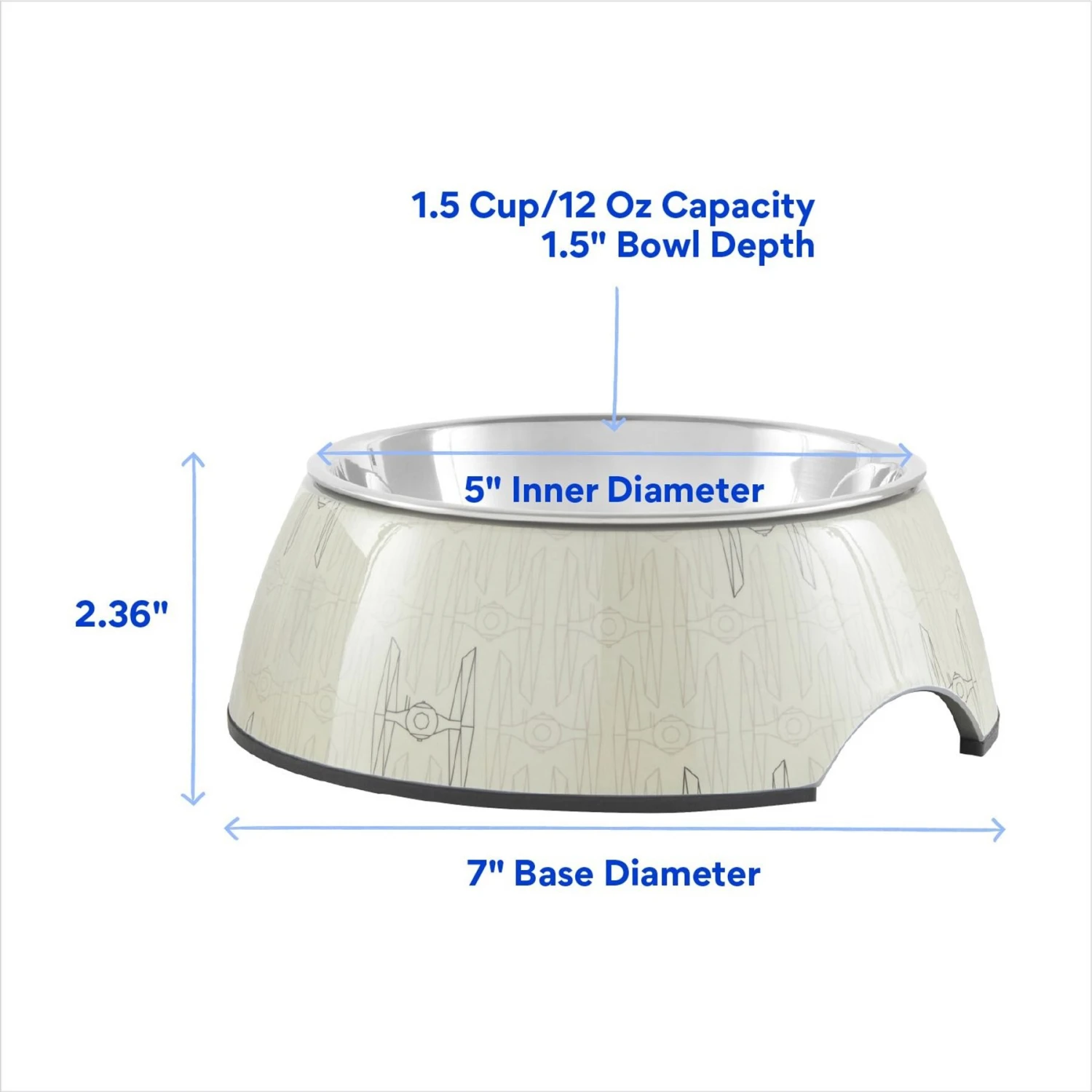 For a furry Star Wars™ superfan, there’s not a better bowl in the whole galaxy! With a gray melamine stand featuring a cool, monochromatic Tie Fighter™ design, this bowl, available only at Chewy, elevates the look of your pet’s place setting. But it’s not just cute and full of Star Wars fun! The stand has a non-skid base to hold their bowl in place, which helps cut down on mealtime messiness. When it’s time to clean up, this bowl is a breeze— just pop the bowl and stand into your dishwasher’s top rack.