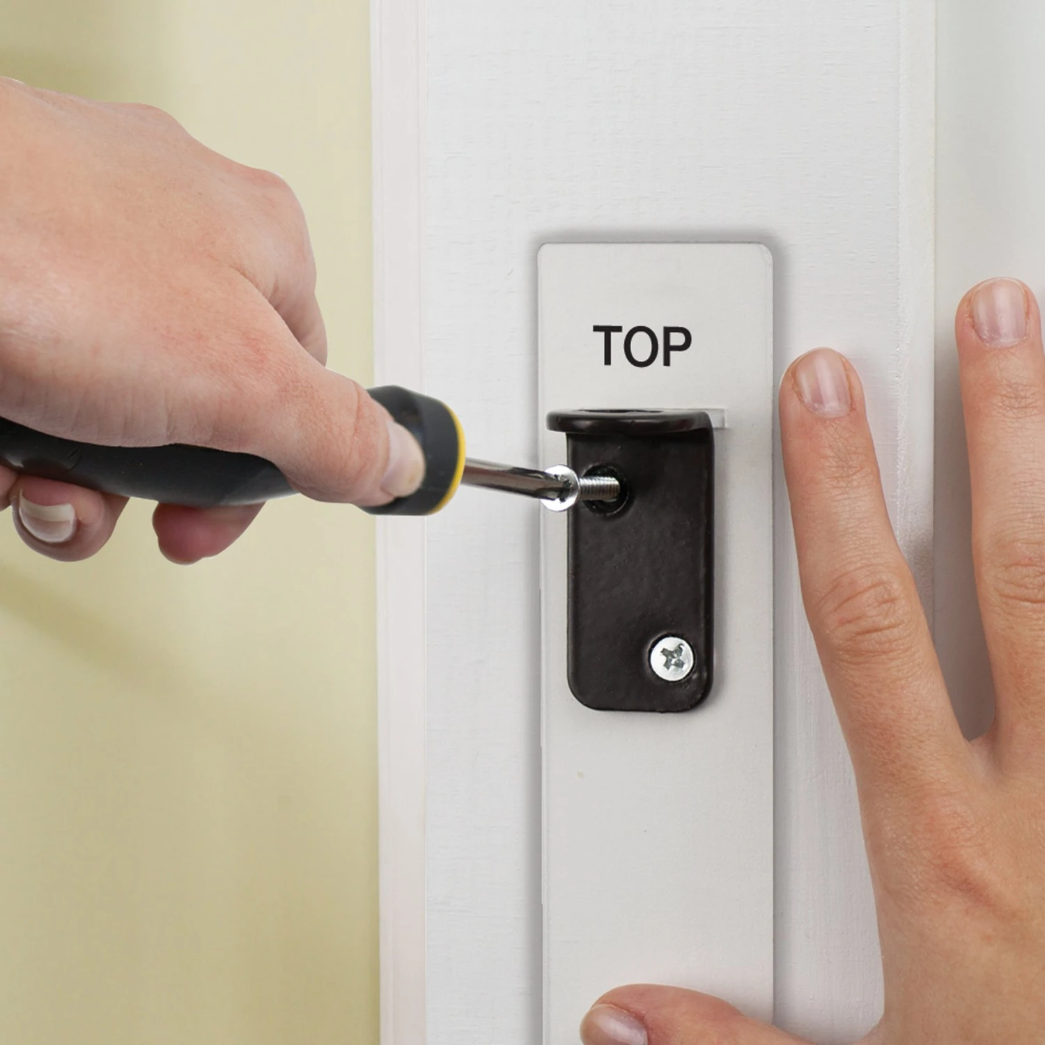 Keep your furry friend contained to certain areas of your home without sacrificing style. The attractive Summer Top of Stairs Simple to Secure Metal Dog Gate is 32 inches tall and can fit stairway openings anywhere from 30 inches to 48 inches wide with the use of the included extension frames. Just use the included hardware mount kit and the precision fit template to ensure correct, easy installation. Easily adjust to the correct width with slide and lock functionality and take advantage of the comfort grip handle to open and close the door with one hand.