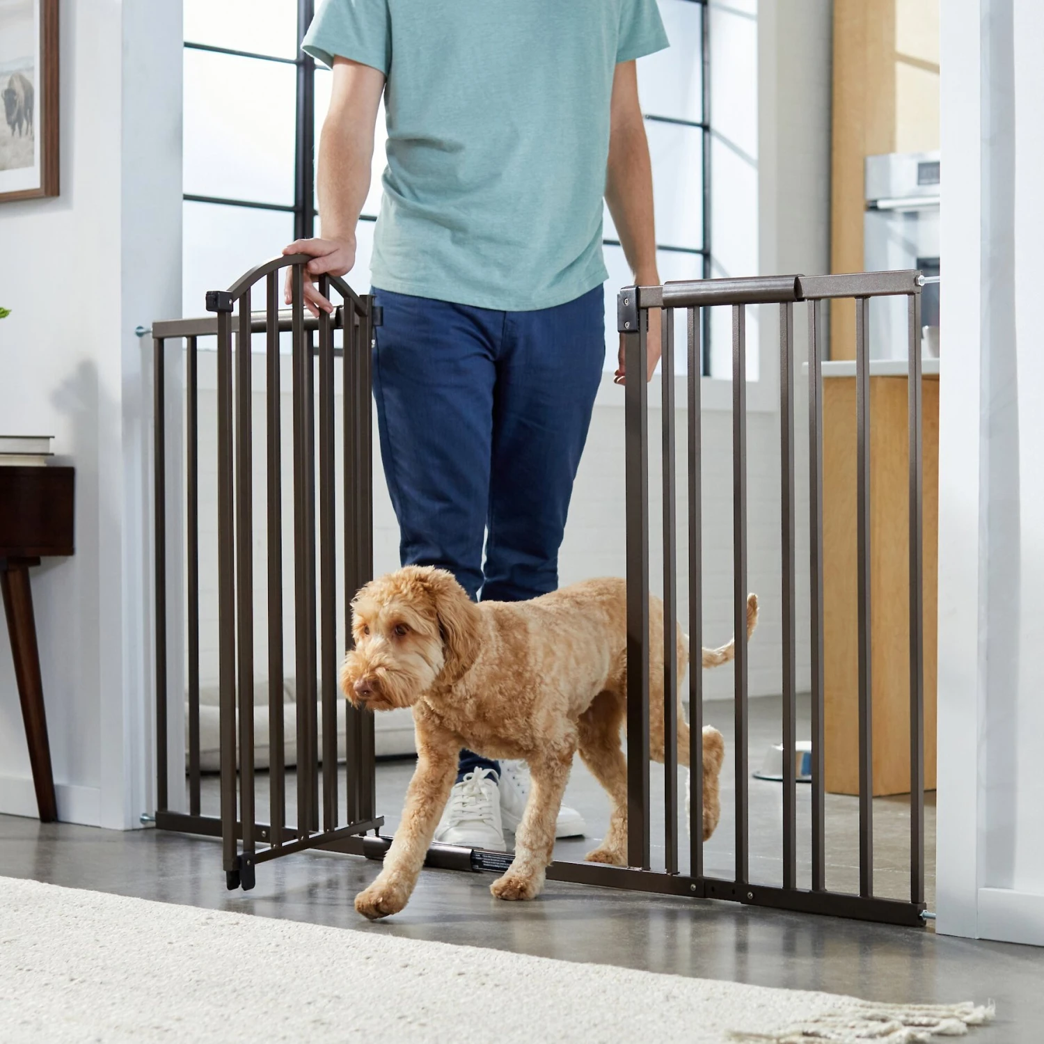 If you need to contain your best buddy to a certain area, the Summer Metal Expansion Walk-Thru Dog Gate is a must-have. Perfect for extra-wide openings in your homeโbetween rooms, at the top of the stairs, or in a doorwayโthis 36-inch tall gate fits openings anywhere from 44 inches to 72 inches wide. A kit is included for hardware mounting this gate (tools required), which also allows for one-handed easy open and a scratch guard on the bottom rail to prevent any damage to your floor.